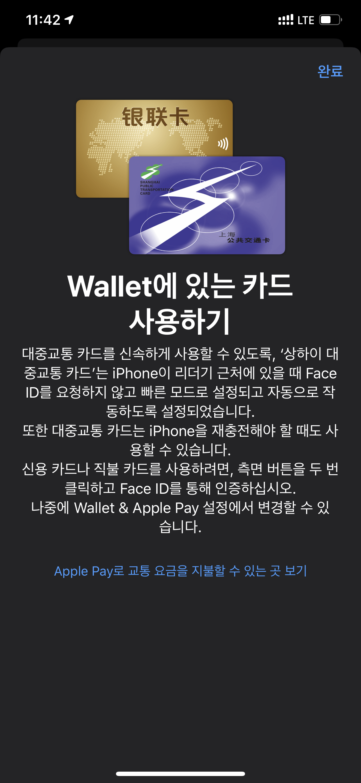 아래는 2020년 1월 10일, 중국 상해(상하이, 上海, Shanghai)에 갔을 때, 저의 아이폰에 상하이 교통카드 추가하는 화면입니다.