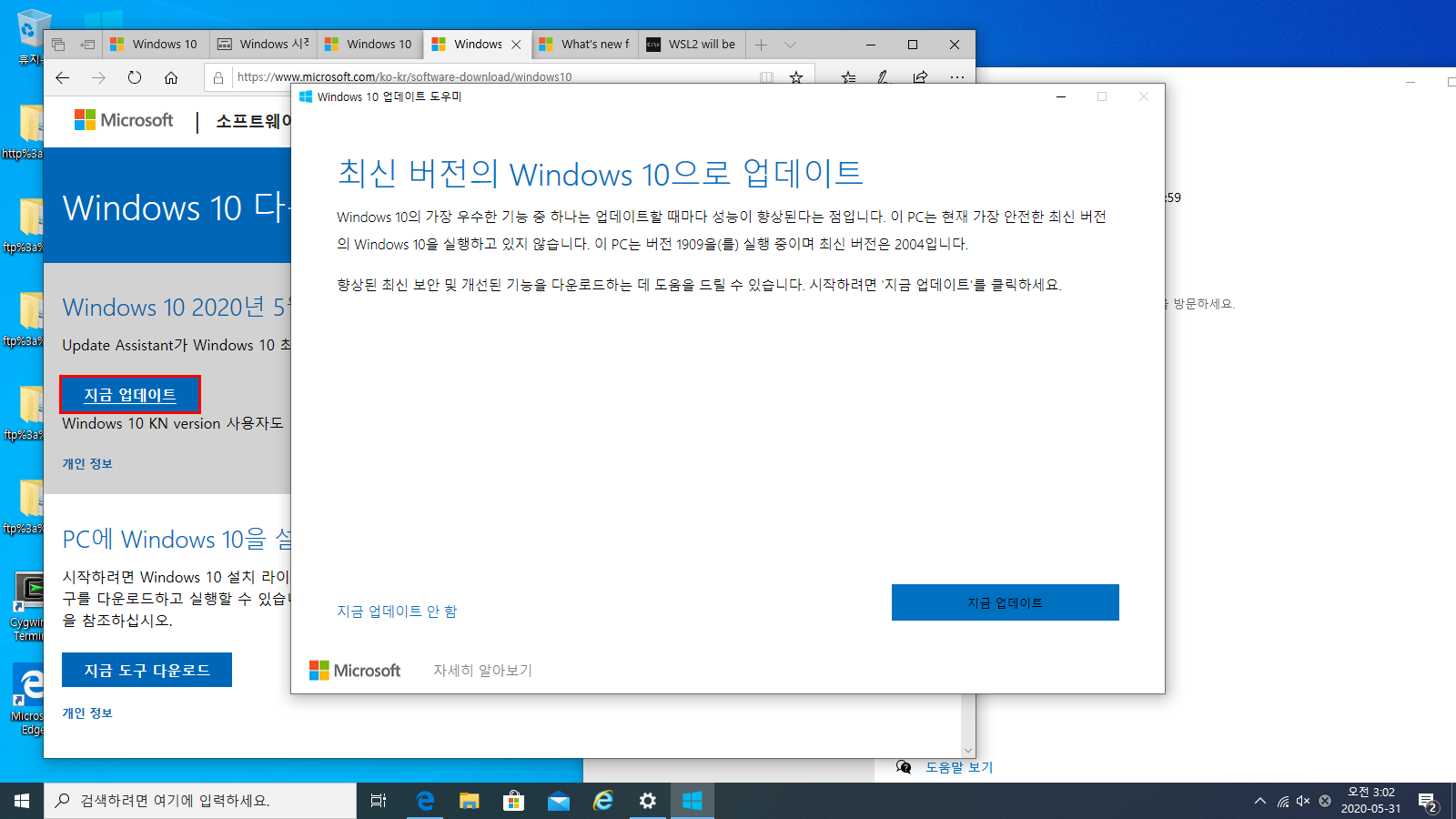 만약에, Windows 10 빌드버전이 2004가 나오지 않으면 아래의 링크로 강제 업데이트를 하면 됩니다.