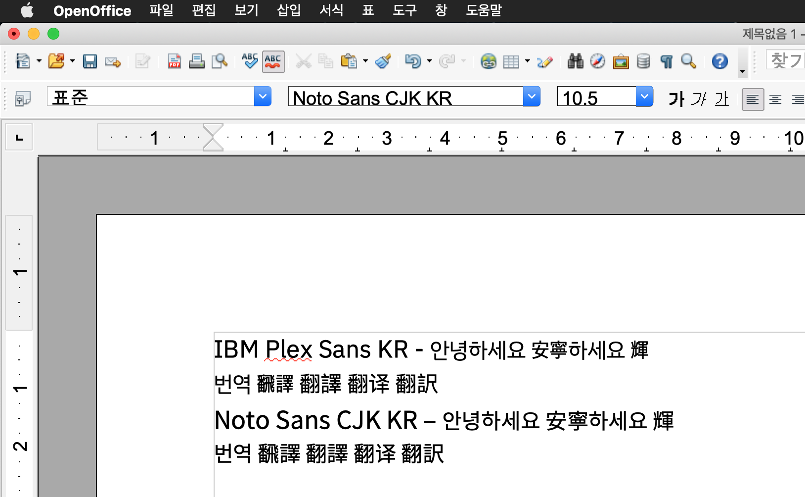 이후, Mac의 LibreOffice에 Plex글꼴을 사용해보았습니다.