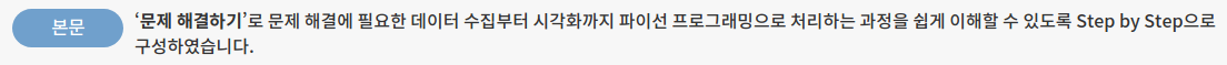 ‘문제 해결하기’로 문제 해결에 필요한 데이터 수집부터 시각화까지 파이선 프로그래밍으로 처리하는 과정을 쉽게 이해할 수 있도록 Step by Step으로 구성하였습니다.