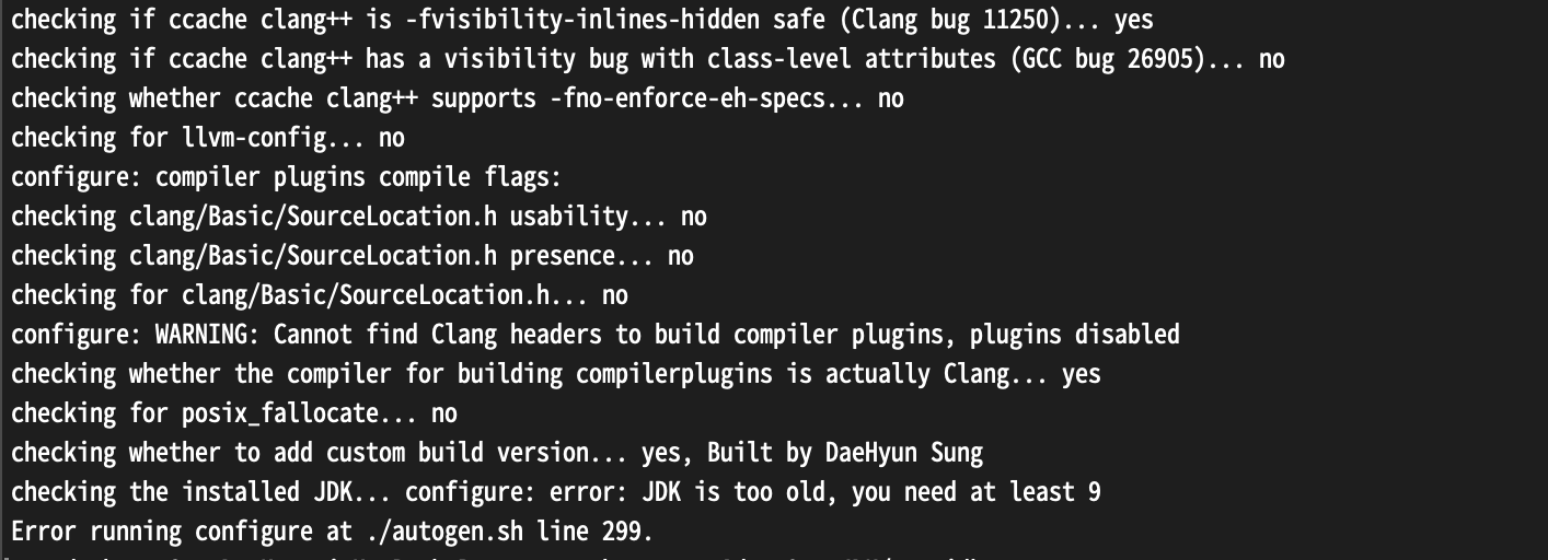 2020년 5월 30일 토요일, 리브레오피스(LibreOffice)의 저장소(Repository)를 다운로드 받아 빌드 설정을 하려니 Java 버전 오류가 아래와 같이 발생하였습니다.