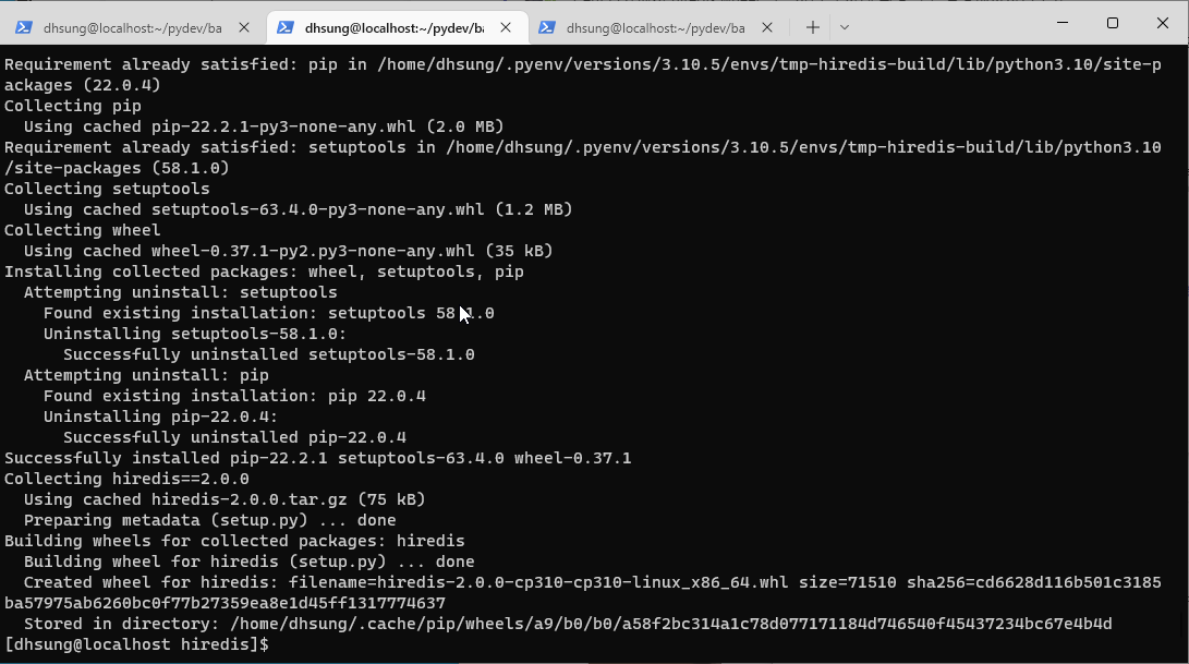 그러나, cpython3.10용 hiredis wheel이 없어서 CentOS7에서 직접 wheel 빌드 어떻게 하나 고민을 했습니다.